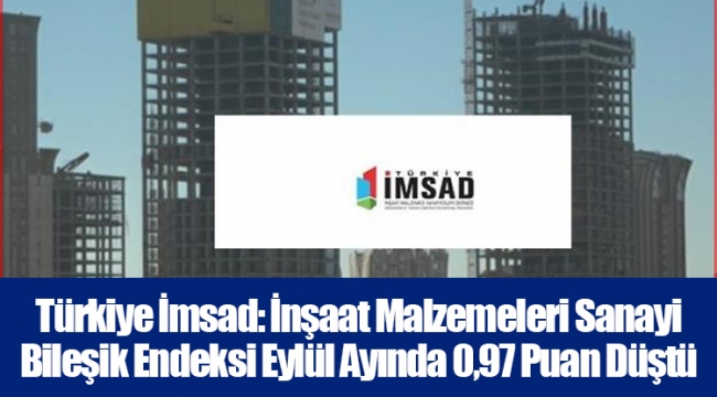 Türkiye İnşaat Malzemesi Sanayicileri Derneği (Türkiye İMSAD) tarafından açıklanan İnşaat Malzemeleri Sanayi Bileşik Endeksi, mevsimsel olarak yüksek sezonda olunmasına rağmen eylül ayında 0,97 puan düştü. Sektöre ilişkin Güven Endeksi'ndeki gerileme ise 0,85 puan oldu.