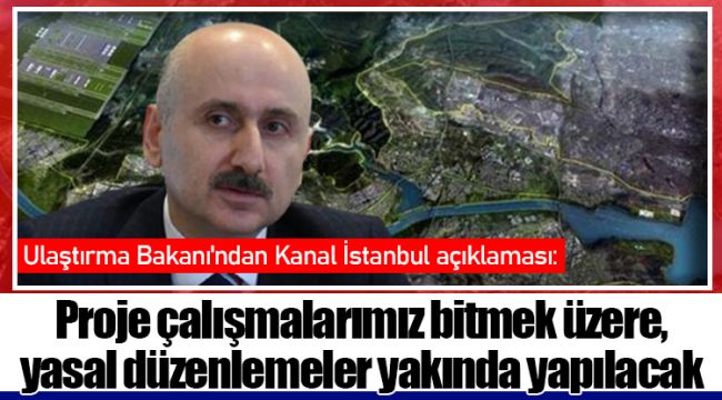 Ulaştırma ve Altyapı Bakanı Adil Karaismailoğlu, Kanal İstanbul projesinde çalışmaların bitmek üzere olduğunu ve yasal düzenlemelerin yakında yapılacağını belirterek, "2021'de Kanal İstanbul için önemli ilerlemeler olacak inşallah. 2021'de kazma vurmak için çalışıyoruz" dedi.