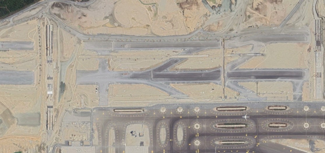 Havalimanına yeni yapılan pist uydu görüntülerine yansıdı. Pistin yanında yüzlerce kamyonun çalıştığı uzaydan çekilen görüntülere yansıdı.